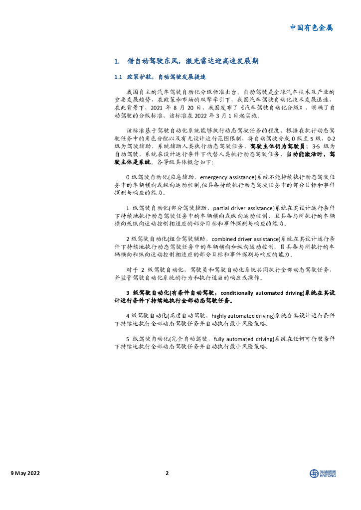 海通国际:中国有色金属:激光雷达:自动驾驶核心传感器,迎高速发展期.pdf