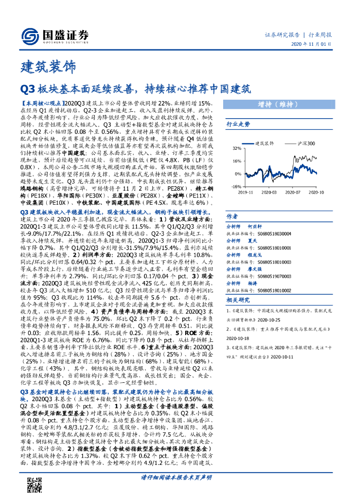 国盛证券:建筑装饰:Q3板块基本面延续改善,持续核心推荐中国建筑.pdf