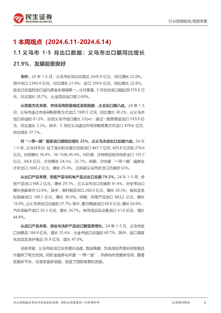 民生证券:零售周观点:5月义乌市出口额同比增长28.7%,景气度持续.pdf