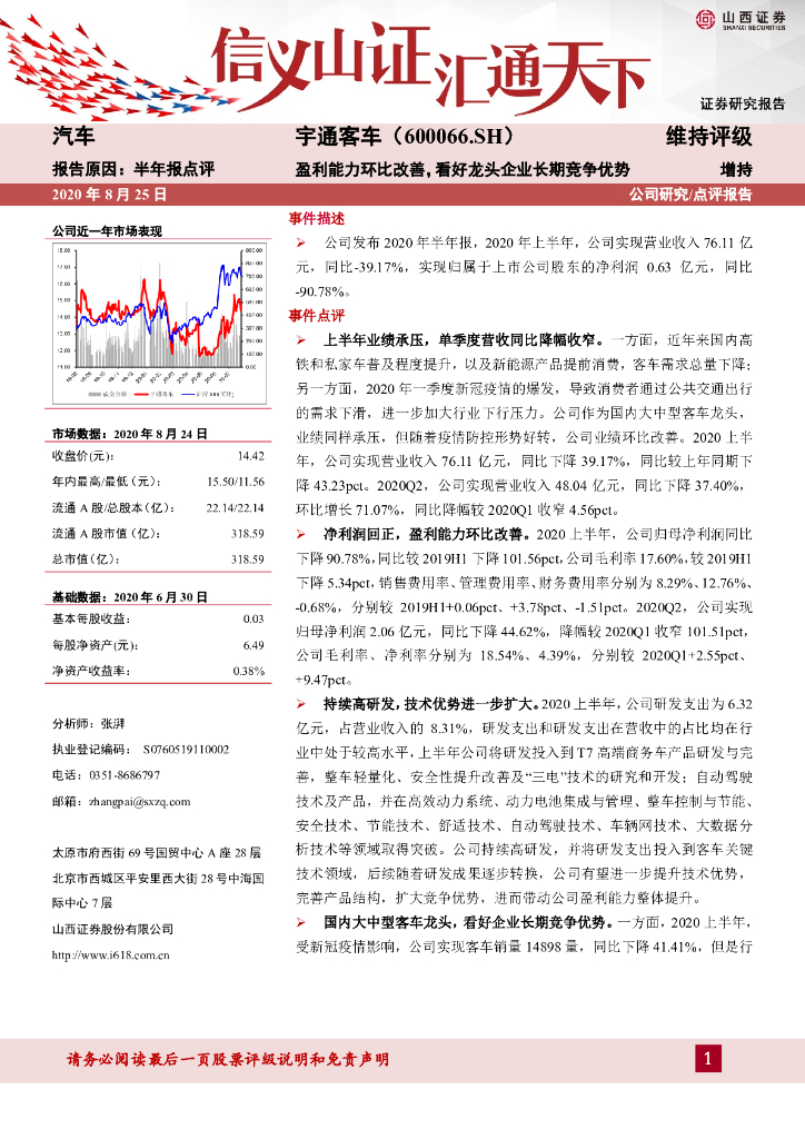 山西证券:宇通客车(600066)-盈利能力环比改善,看好龙头企业长期竞争优势.pdf