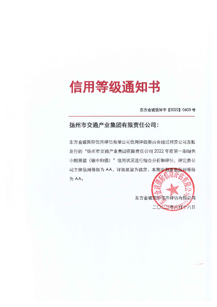 东方金诚:扬州市交通产业集团有限责任公司2022年度第一期绿色中期票据(碳中和债)信用评级报告.pdf