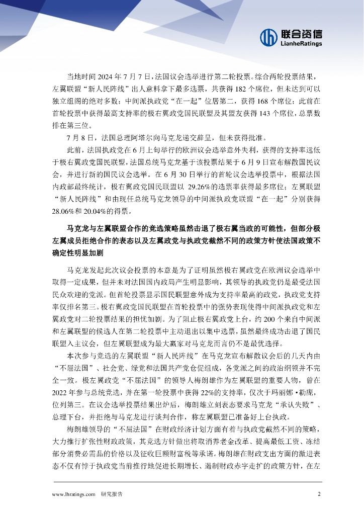 联合资信:左翼联盟意外获胜,法国议会“三足鼎立”对未来影响几何?.pdf