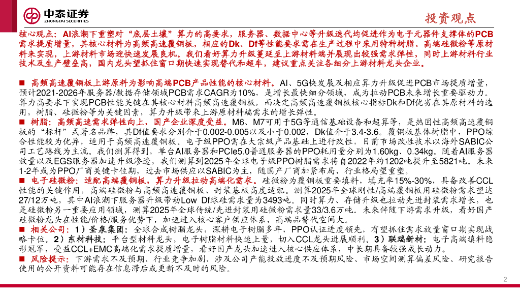 中泰证券:PCB材料:算力升级在即,上游材料需求弹性可期.pdf