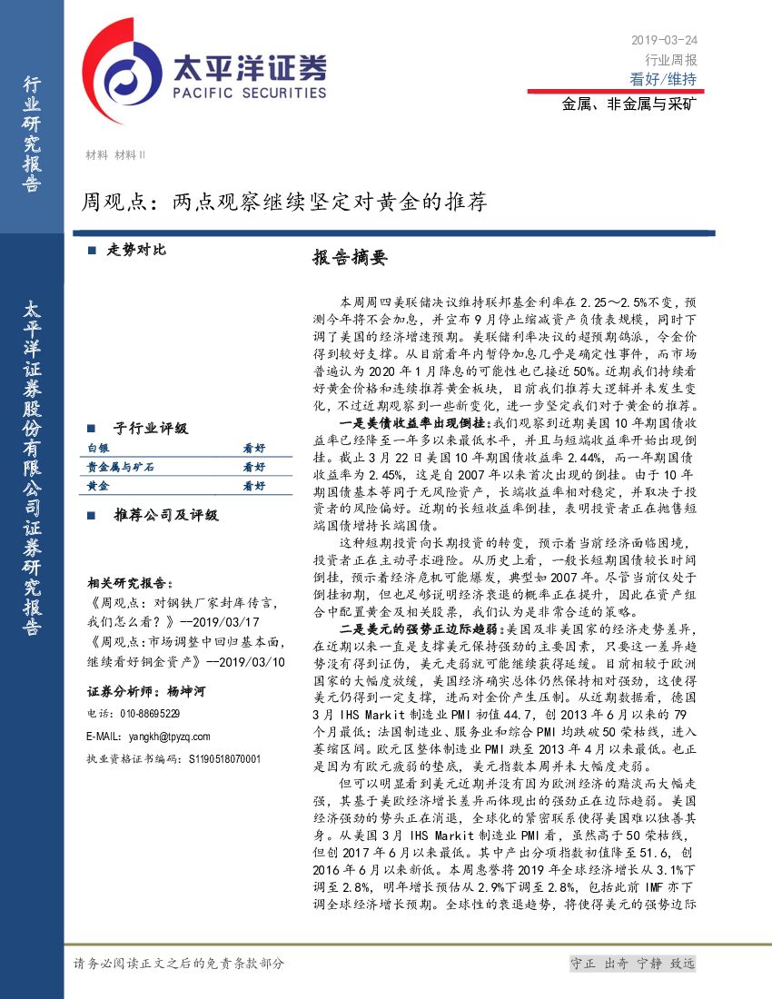 太平洋证券:金属、非金属与采矿周观点:两点观察继续坚定对黄金的推荐.pdf