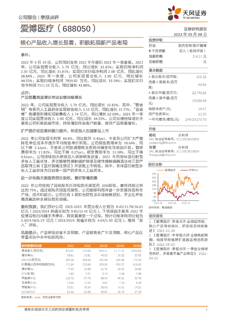 天风证券:爱博医疗(688050)-核心产品收入增长显著,积极拓展新产品布局.pdf