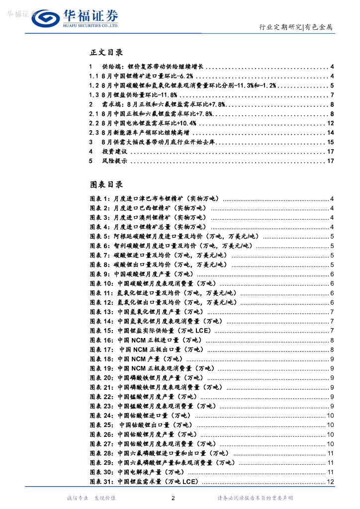 华福证券:锂产业链月度追踪:8月供需大幅改善带动月底行业开始去库,9月供给扰动以及最旺排产支撑价格偏强震荡.pdf