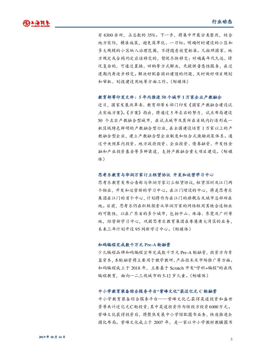 上海证券:教育行业动态:《国家产教融合建设试点实施方案》出台,探索职教人才培养新模式.pdf
