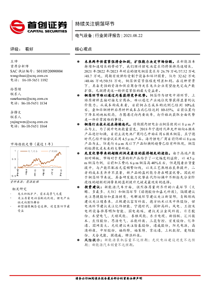 首创证券:电气设备行业简评报告:持续关注铜箔环节.pdf