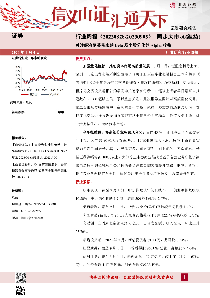 山西证券:证券行业周报:关注经济复苏带来的Beta及个股分化的Alpha收益.pdf