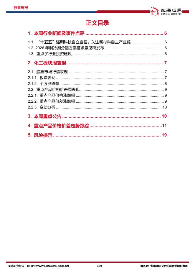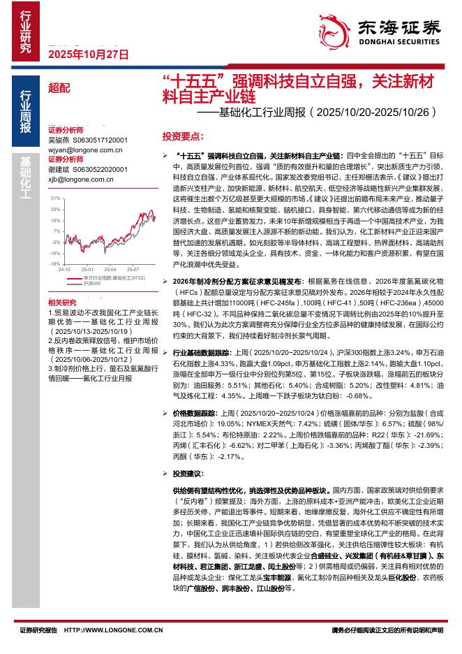 东海证券:基础化工行业周报:“十五五”强调科技自立自强,关注新材料自主产业链.pdf