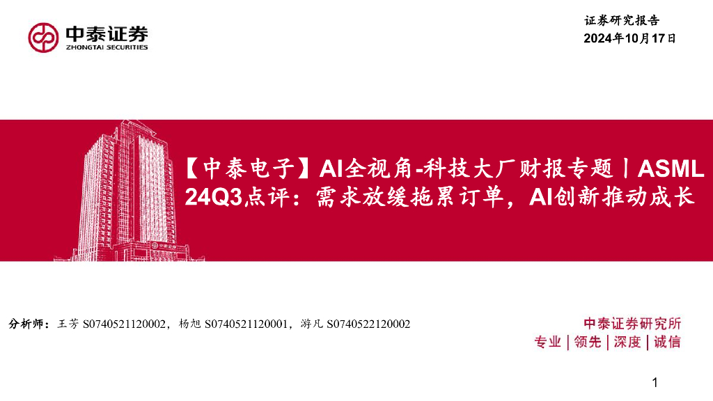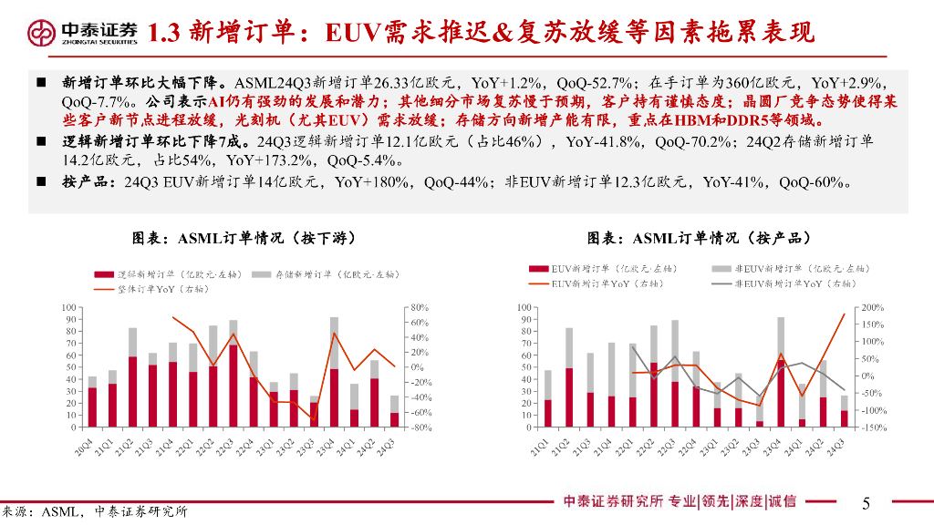 中泰证券:【中泰电子】AI全视角-科技大厂财报专题丨ASML24Q3点评:需求放缓拖累订单,AI创新推动成长.pdf