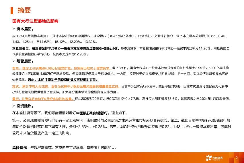 天风证券:银行投资跟踪:国有大行注资落地的影响.pdf