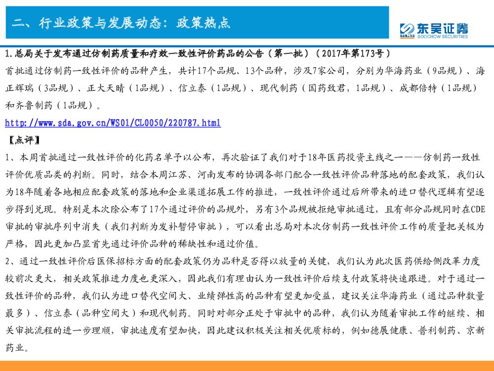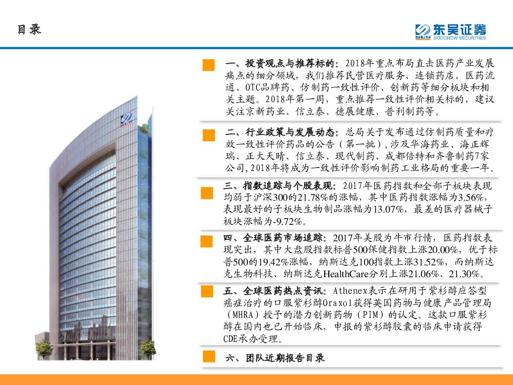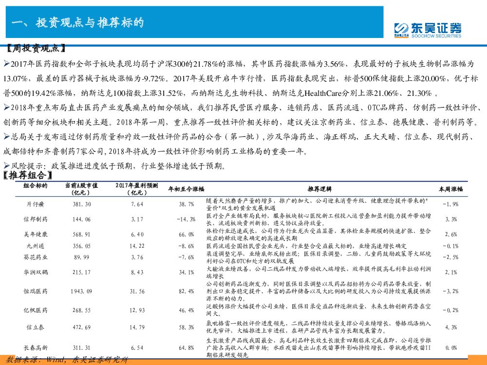 东吴证券:东吴医药行业周观点:去芜存菁、结构升级,2018年医药迎来慢牛行情,本周首推一致性评价标的.pdf