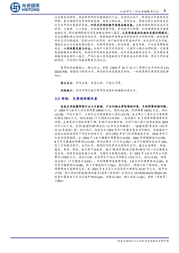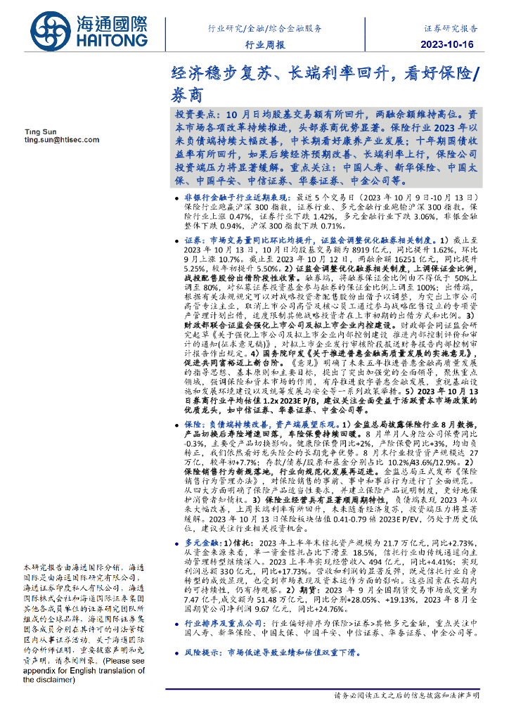 海通国际:综合金融服务行业周报:经济稳步复苏、长端利率回升,看好保险/券商.pdf