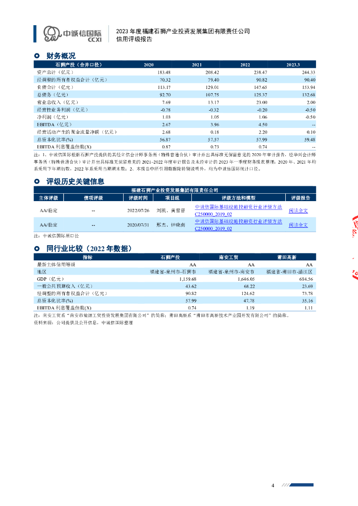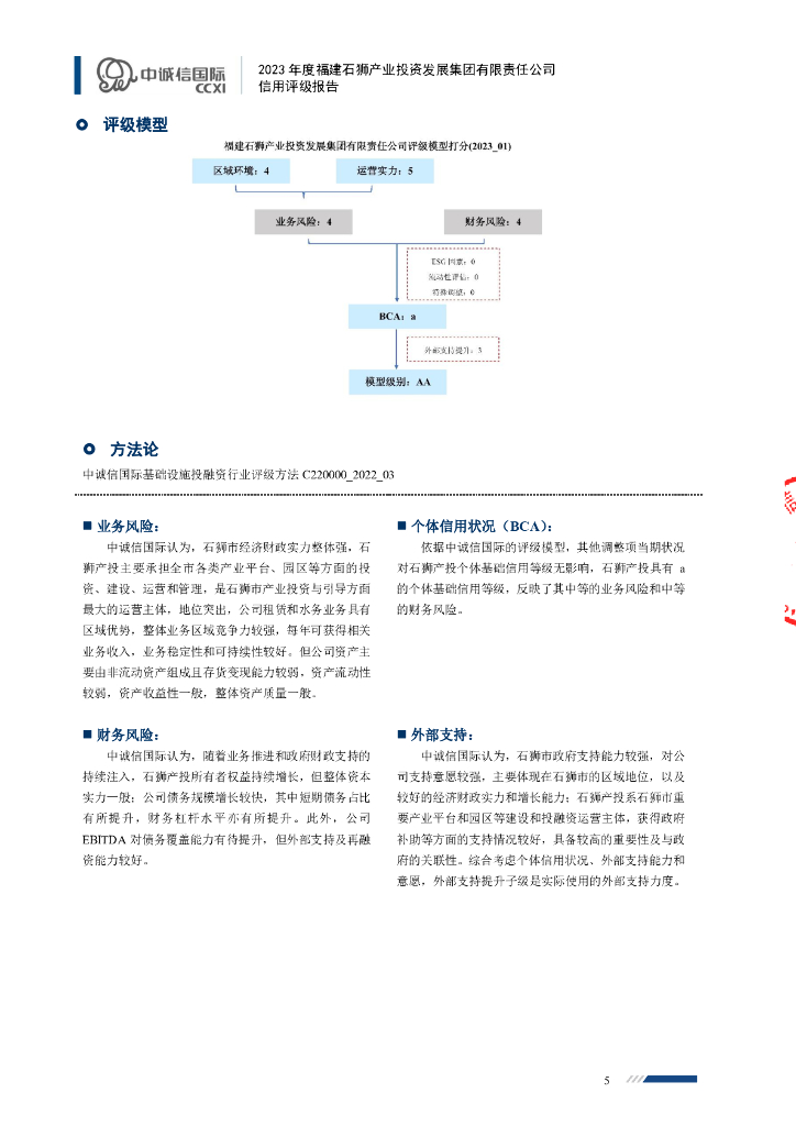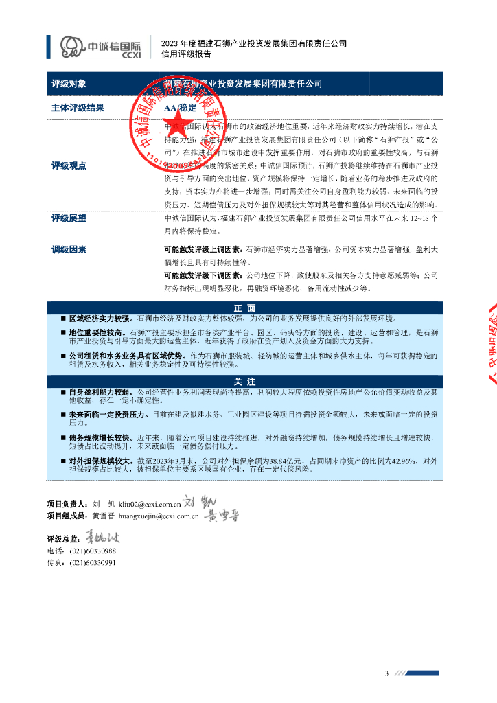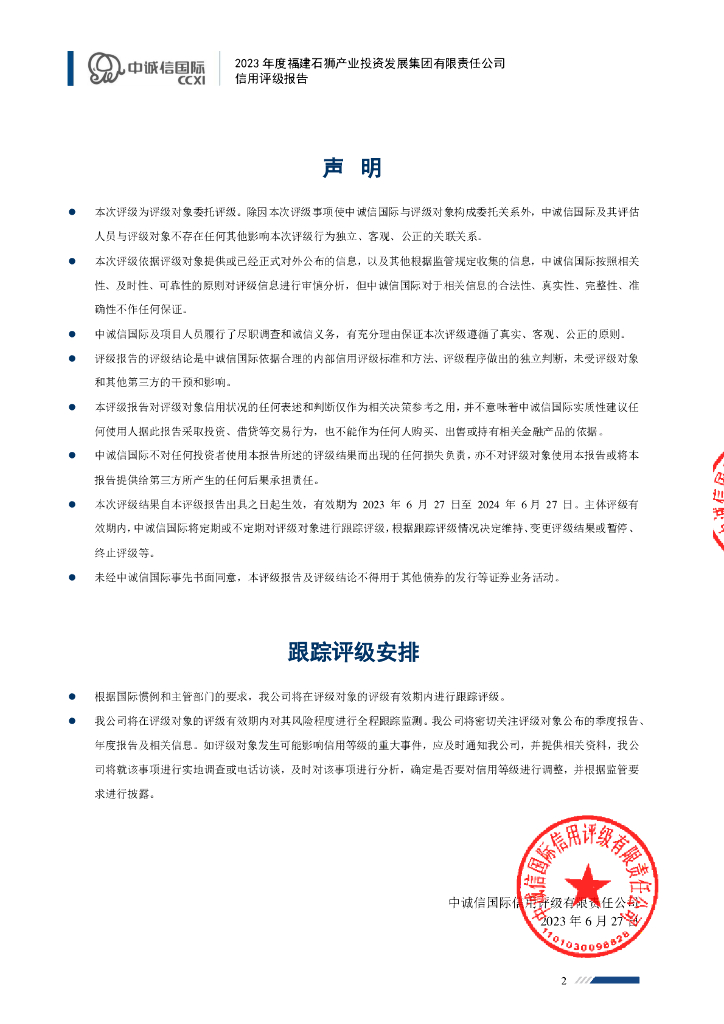 中诚信:2023年度福建石狮产业投资发展集团有限责任公司信用评级报告.pdf