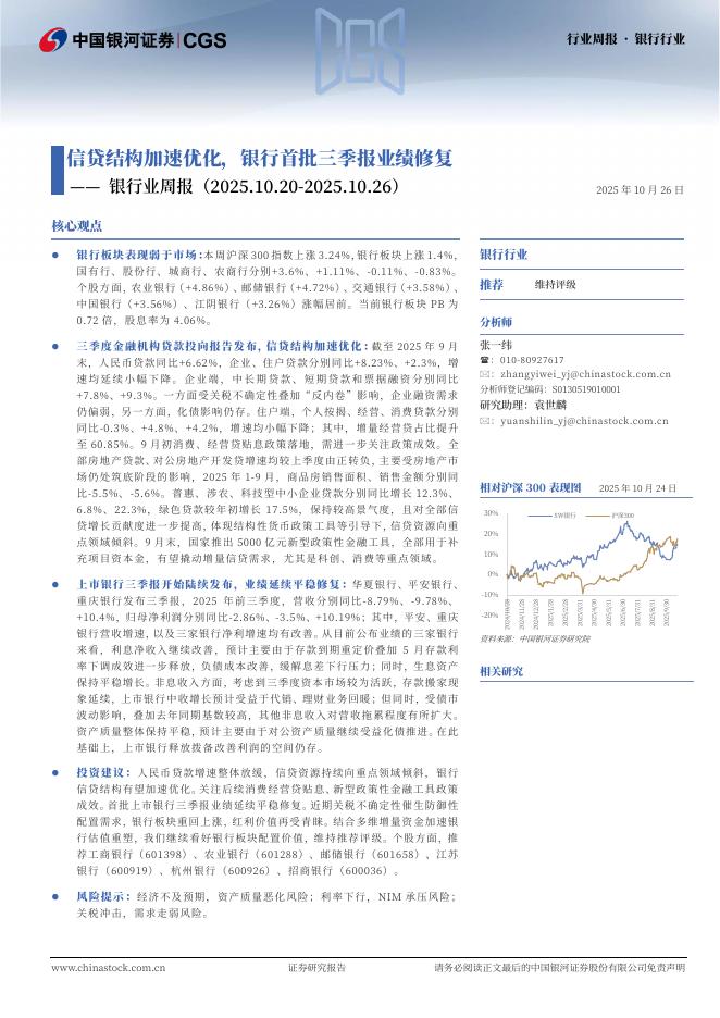 中国银河:银行业周报:信贷结构加速优化,银行首批三季报业绩修复.pdf