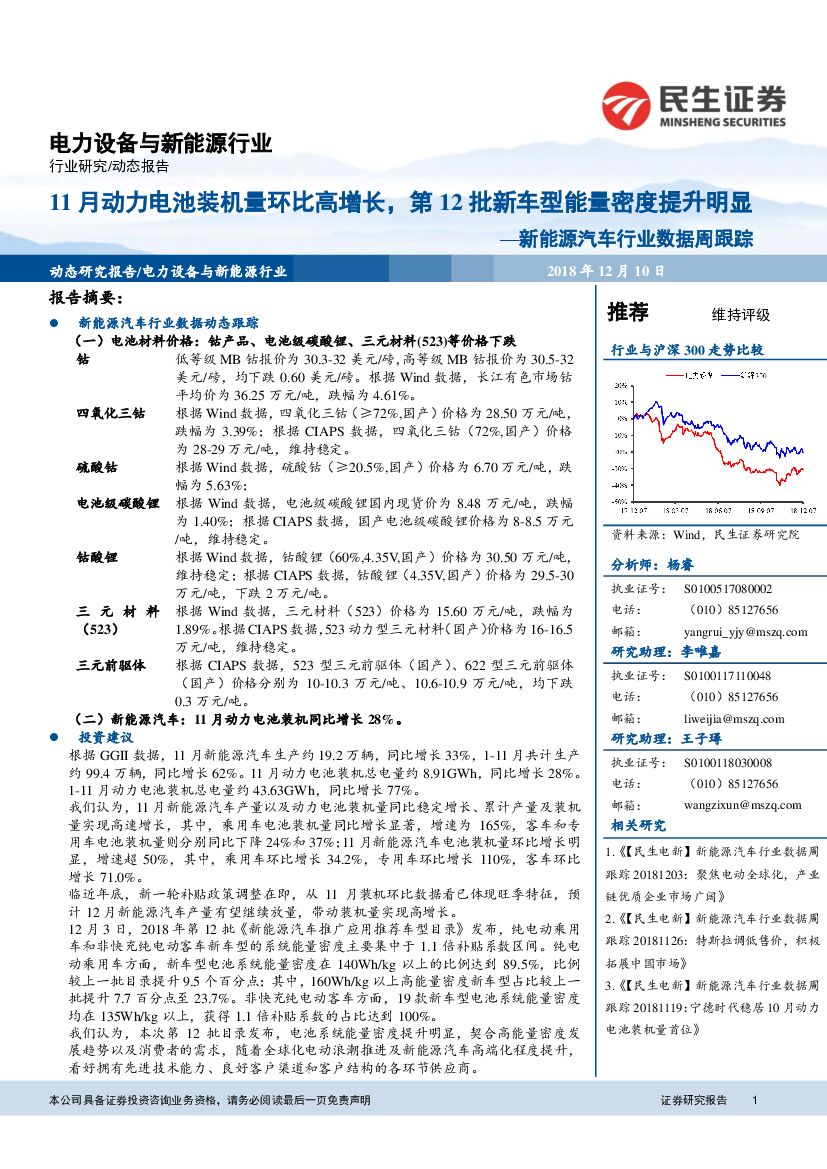 民生证券:新能源汽车行业数据周跟踪:11月动力电池装机量环比高增长,第12批新车型能量密度提升明显.pdf