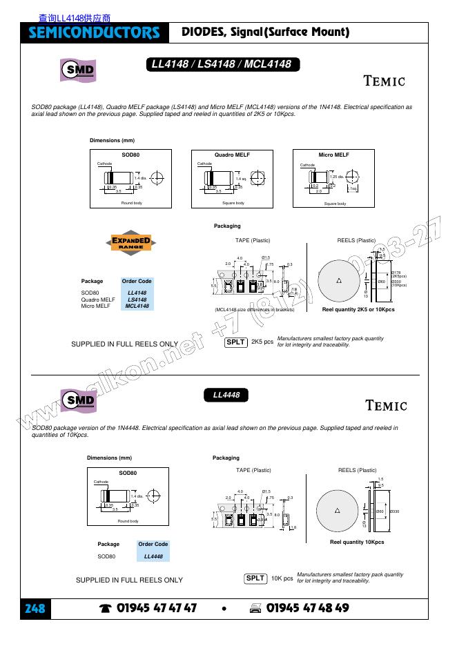 SEMICONDUCTORS DIODES, Signal(Surface Mount) 248 LL4148 / LS4148 / MCL4148 数据手册.pdf