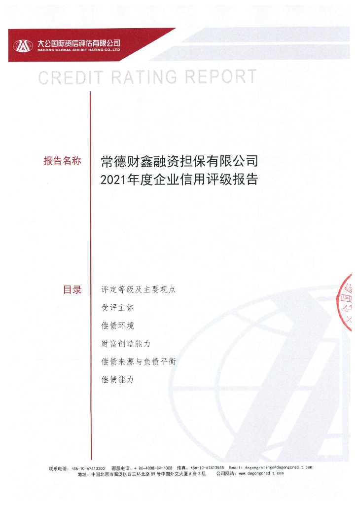 大公:常德财鑫融资担保有限公司信用评级报告及跟踪评级安排.pdf