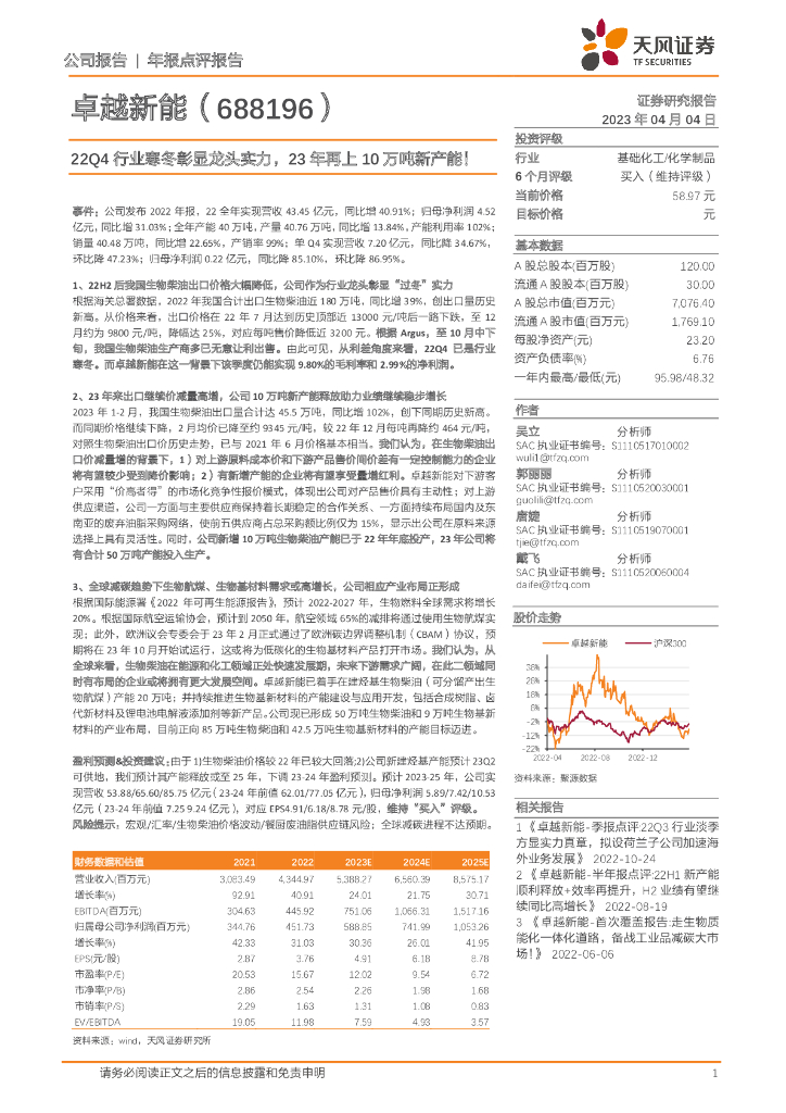 天风证券:卓越新能(688196)-22Q4行业寒冬彰显龙头实力,23年再上10万吨新产能!.pdf