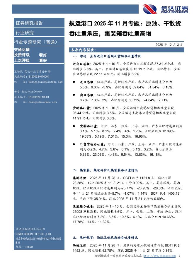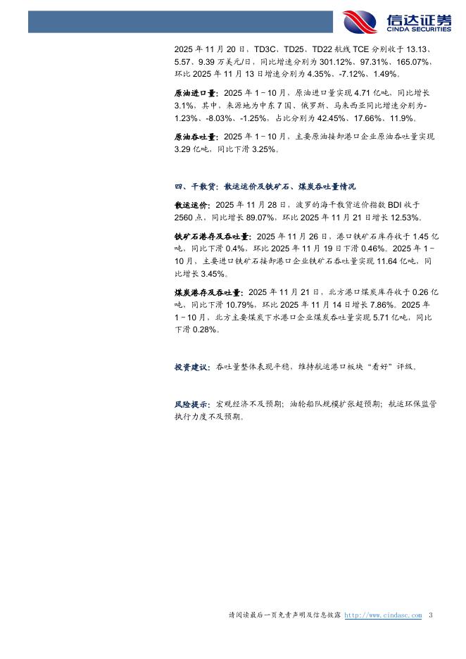 信达证券:航运港口2025年11月专题:原油、干散货吞吐量承压,集装箱吞吐量高增.pdf