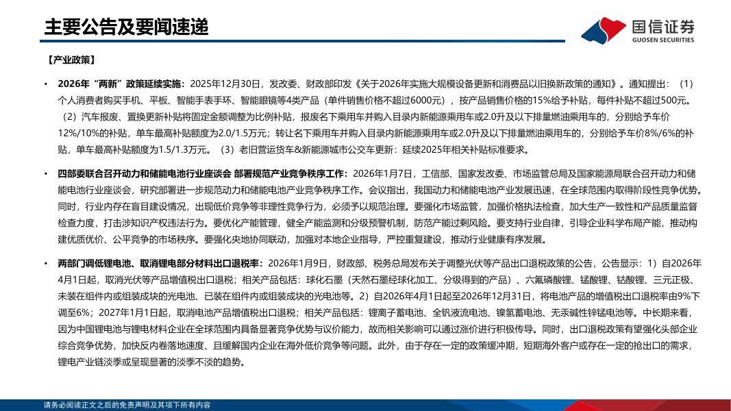 国信证券:锂电产业链双周报(2026年1月第1期):四部委召开会议规范产业竞争,锂电池出口退税政策将陆续退出.pdf