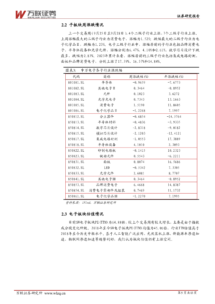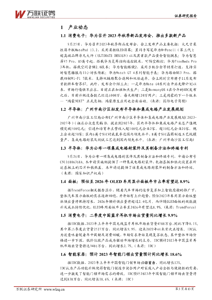 万联证券:电子行业周观点:华为召开2023年秋季新品发布会,推出多款新产品.pdf