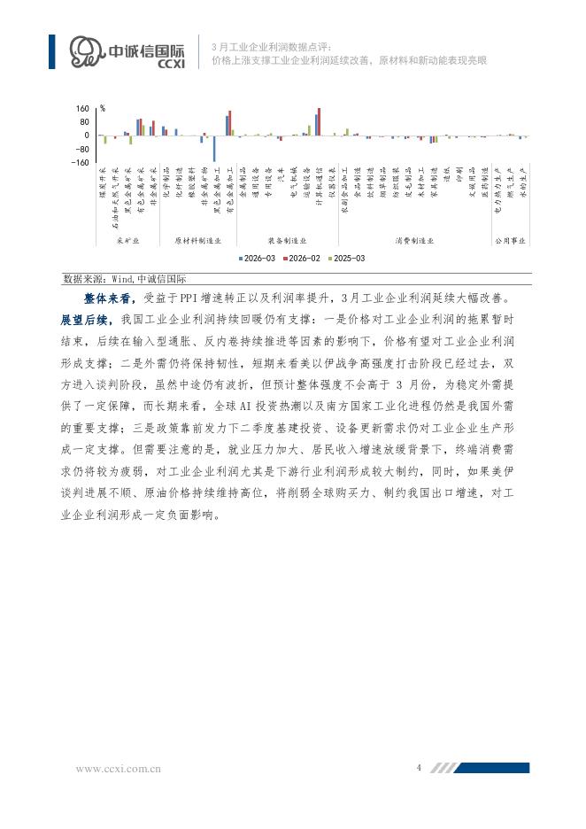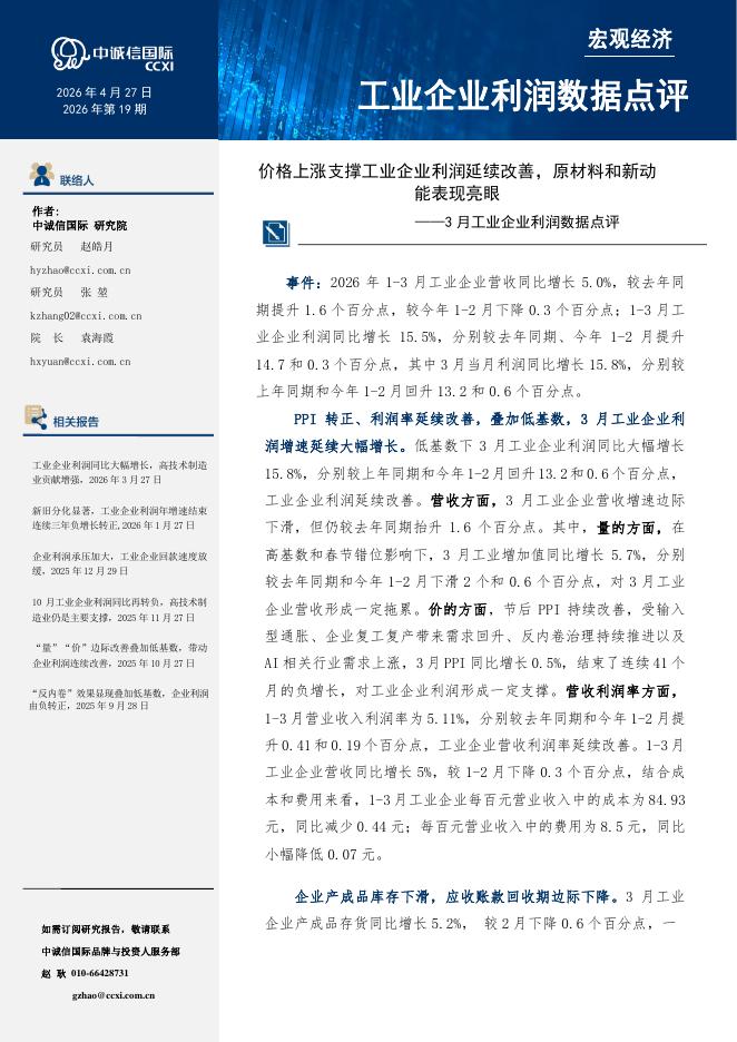 中诚信国际:3月工业企业利润数据点评:价格上涨支撑工业企业利润延续改善,原材料和新动能表现亮眼-260428.pdf