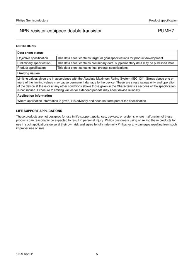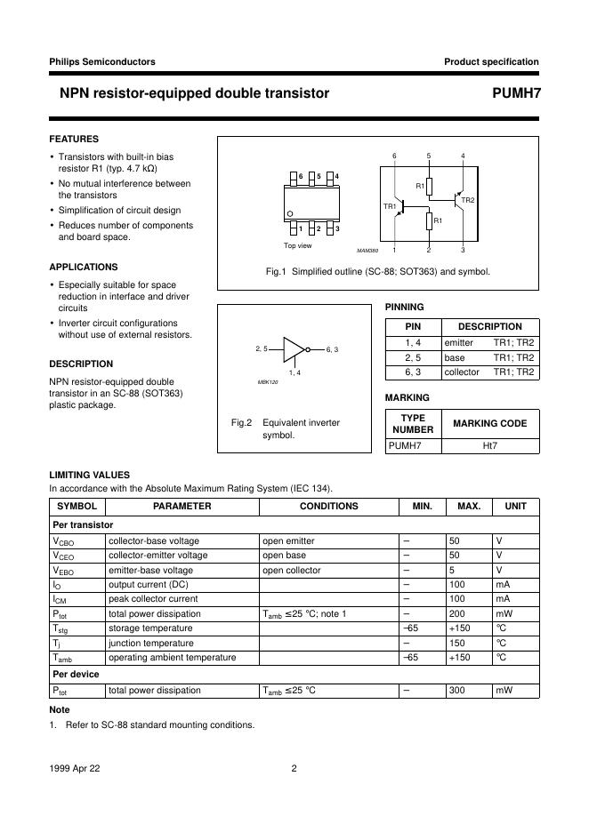 PHILIPS PUMH7 NPN resistor-equipped double transistor 数据手册.pdf