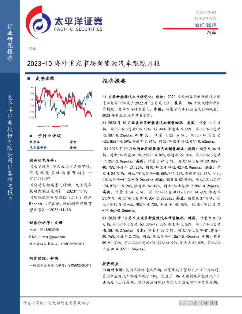 太平洋证券:汽车行业深度报告:2023-10海外重点市场新能源汽车跟踪月报.pdf