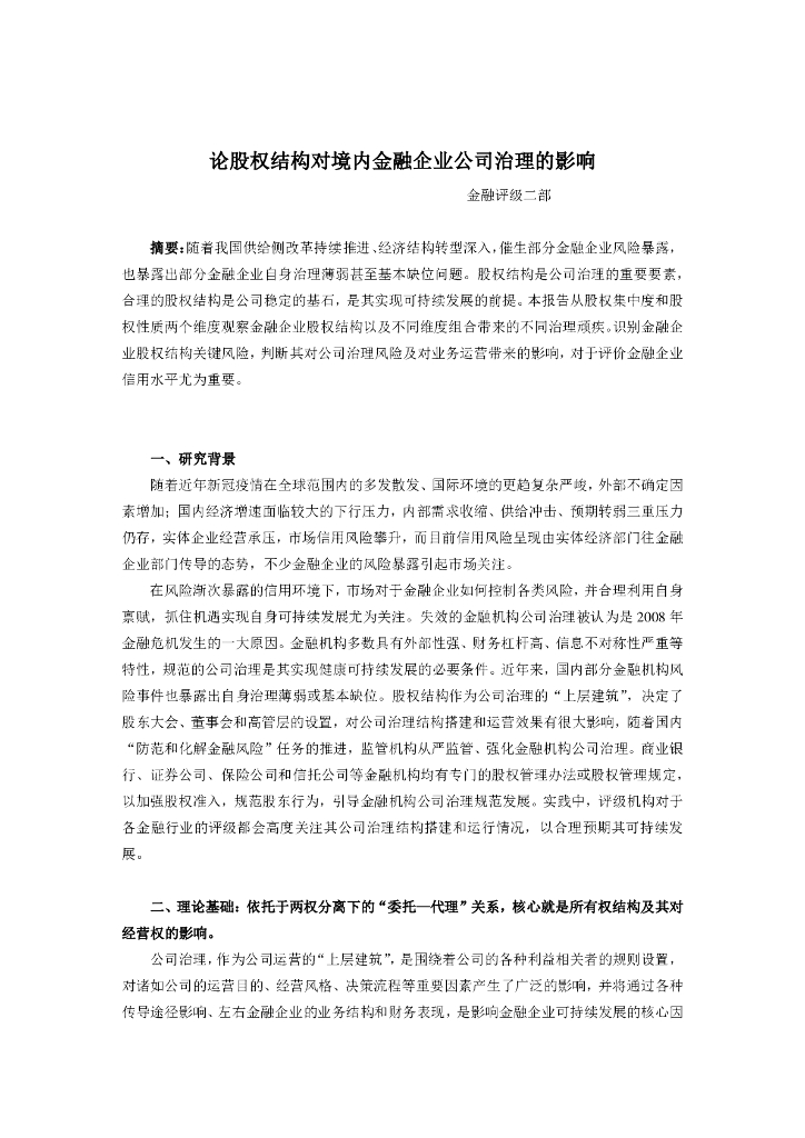 论股权结构对境内金融企业公司治理的影响.pdf
