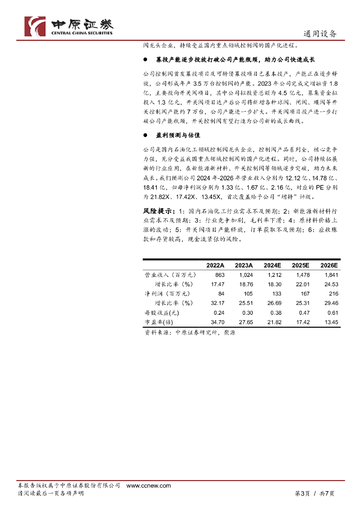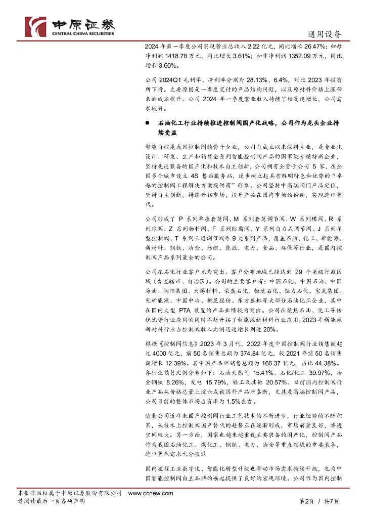 中原证券:智能自控(002877)-2023年报&2024一季报点评:受益国产化推进控制阀龙头高速成长,募投产能投放助力业绩增长.pdf