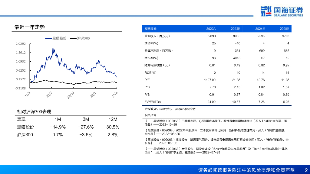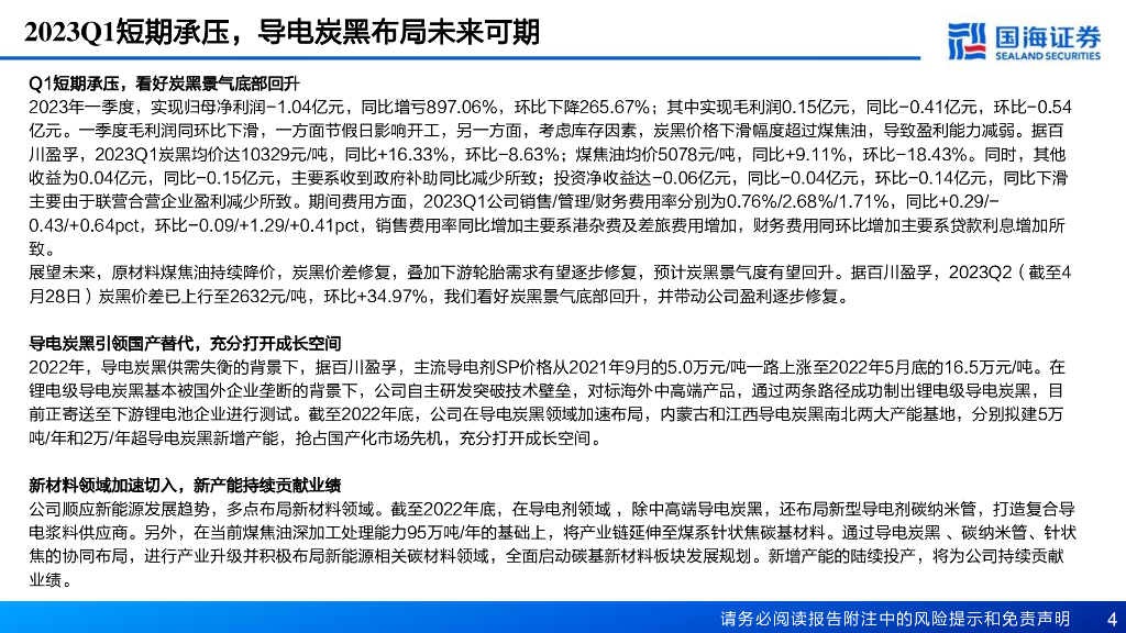 国海证券:黑猫股份(002068)-2022年报及2023一季报点评:2023Q1短期承压,导电炭黑布局未来可期.pdf