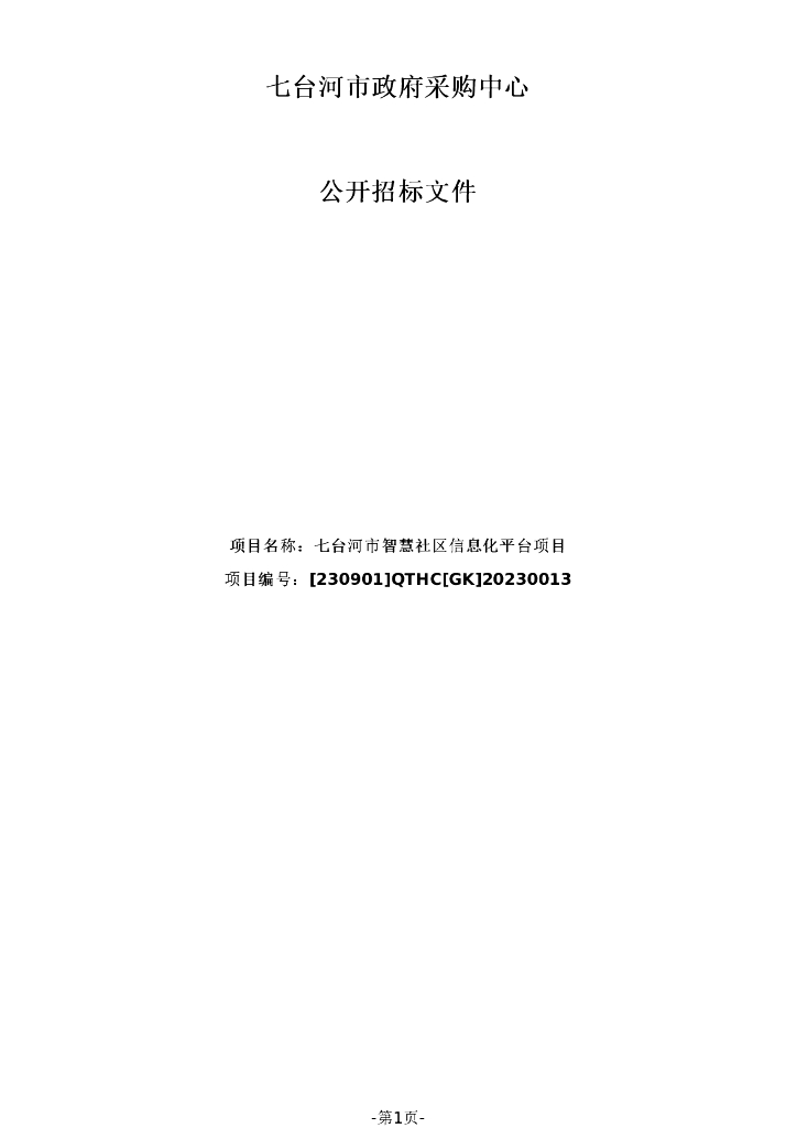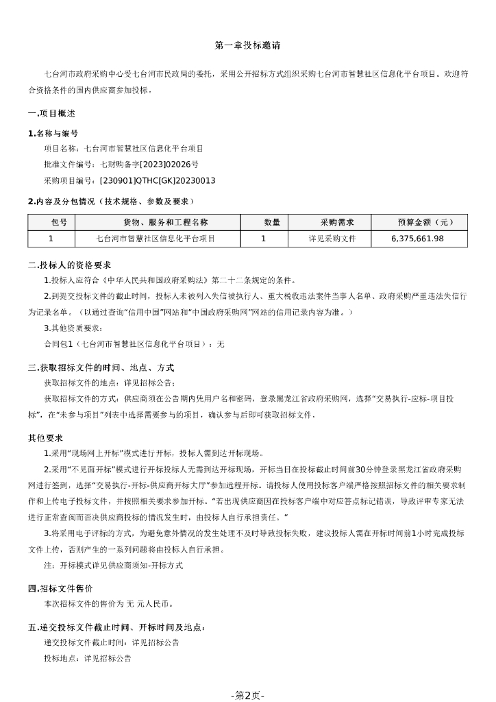智慧社区-七台河市智慧社区信息化平台项目招标文件.pdf