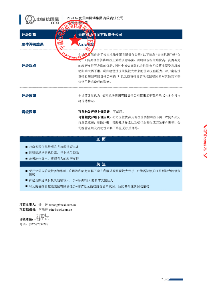 中诚信:2023年度云南机场集团有限责任公司信用评级报告.pdf