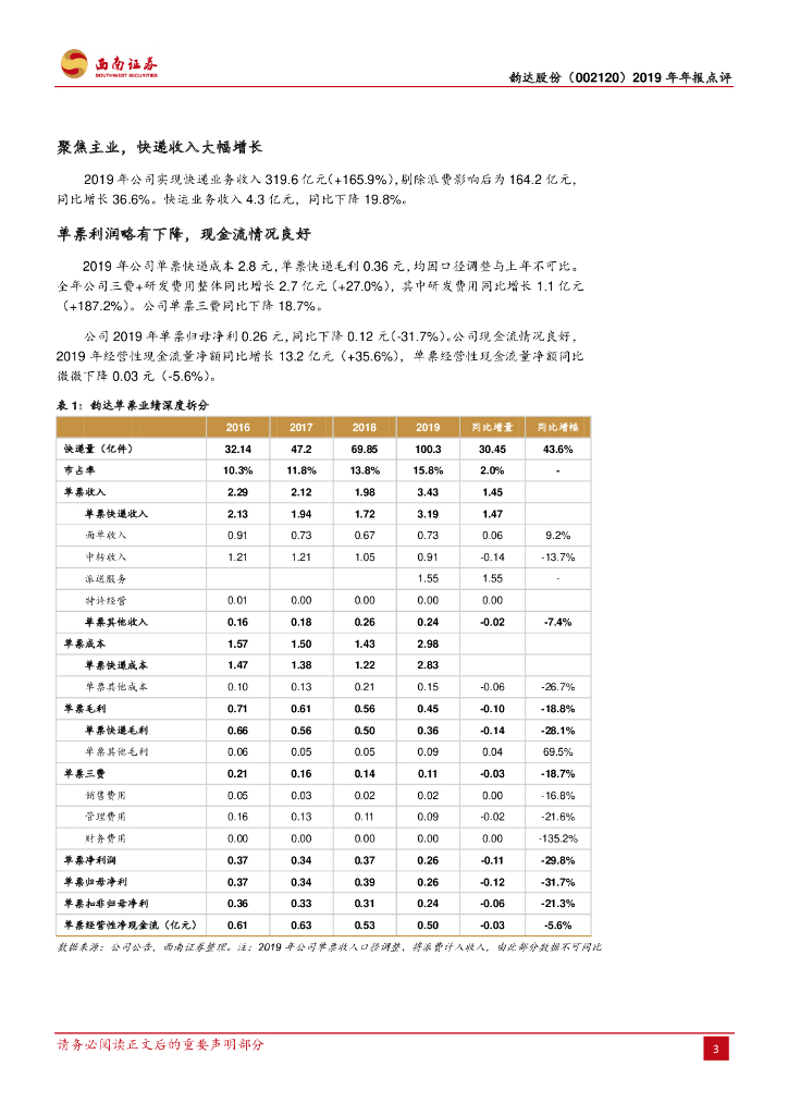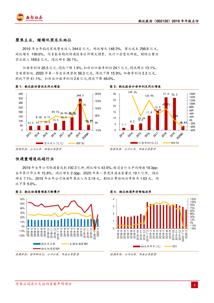 西南证券:韵达股份(002120)-扣非利润增长13%,成本优势持续增强.pdf