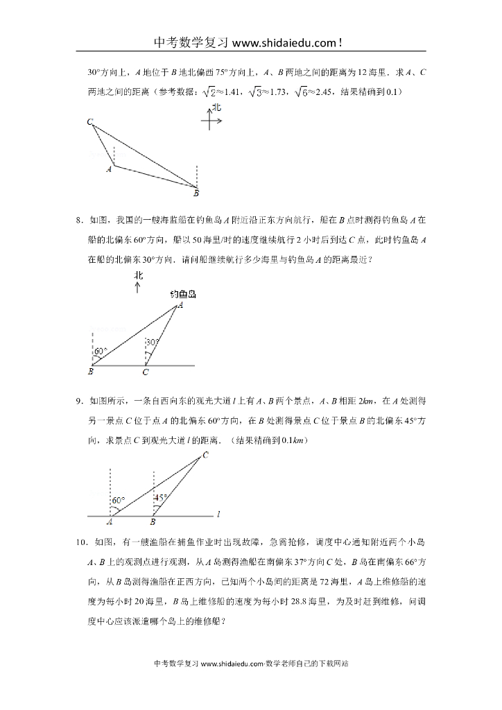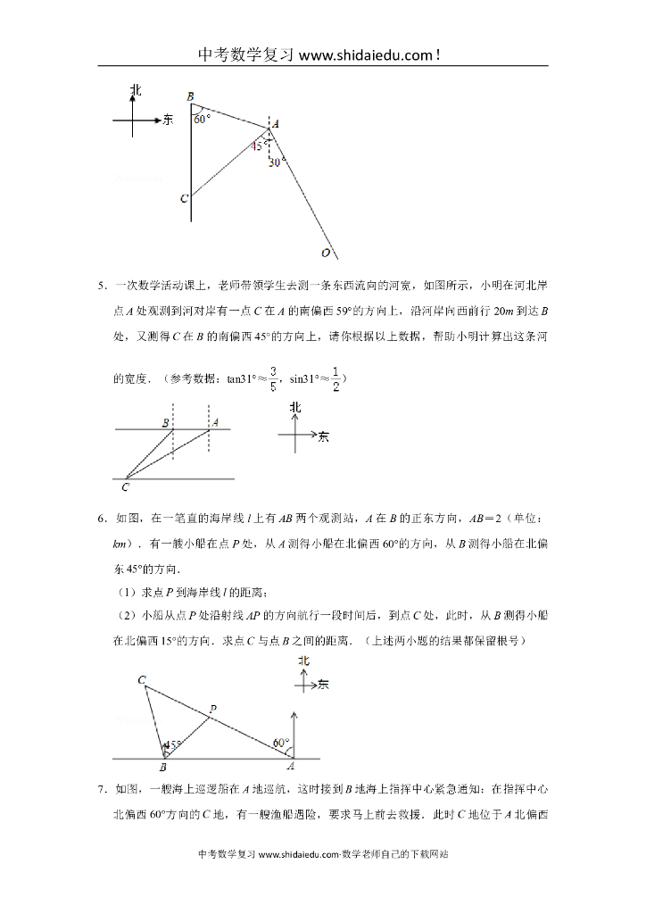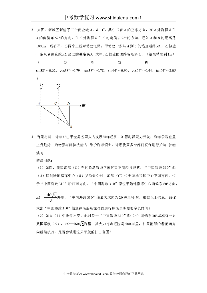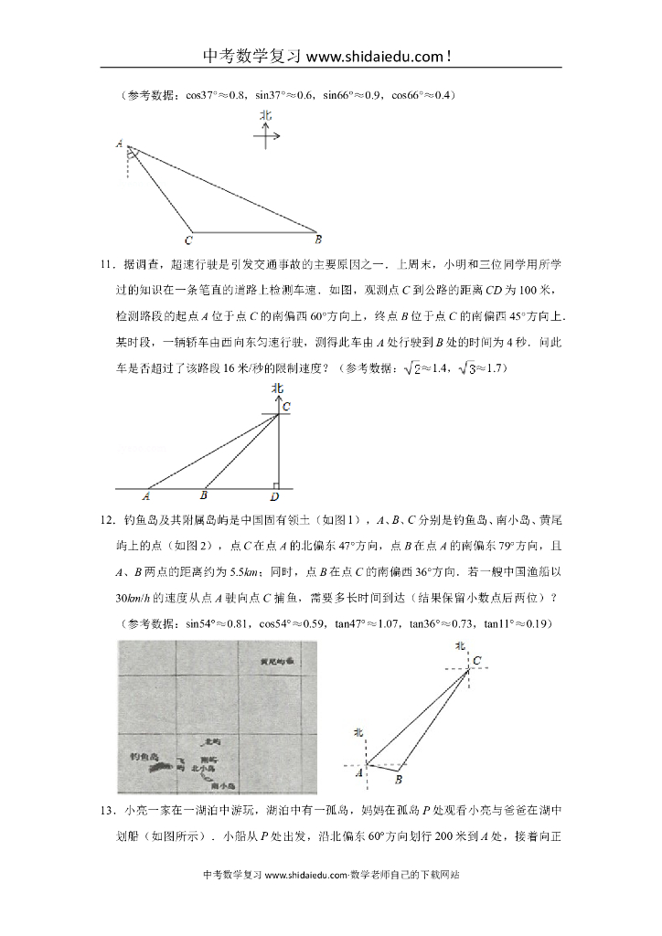 华师大新版九年级(上)-中考题单元试卷:第24章-解直角三角形(15).doc