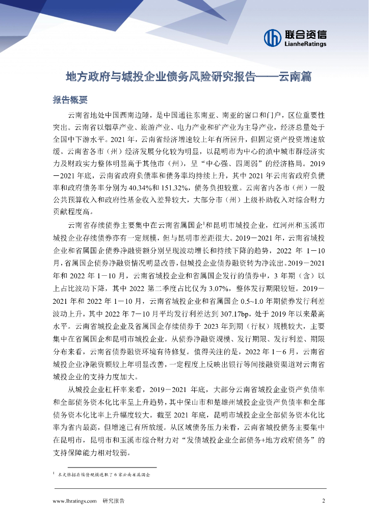 联合资信:地方政府与城投企业债务风险研究报告-云南篇.pdf