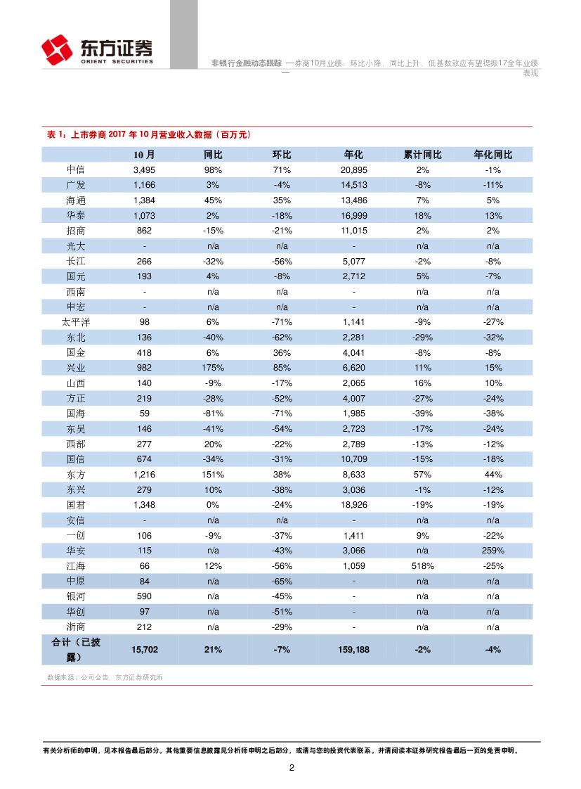 东方证券:非银行金融行业:券商10月业绩:环比小降,同比上升,低基数效应有望提振17全年业绩表现.pdf
