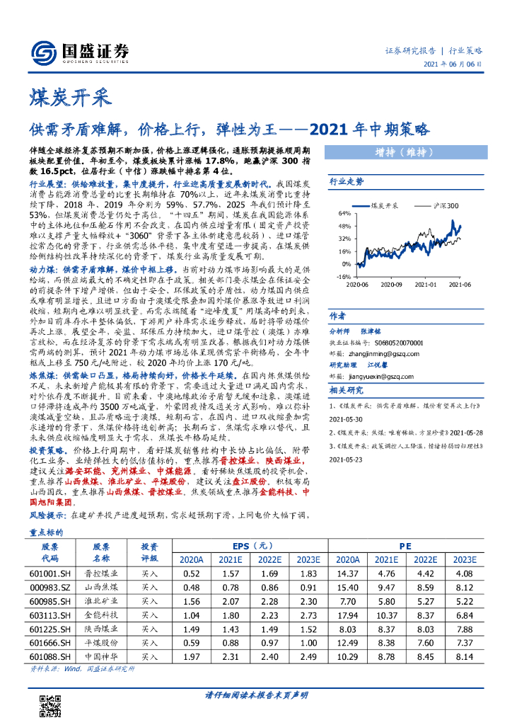 国盛证券:煤炭开采2021年中期策略:供需矛盾难解,价格上行,弹性为王.pdf