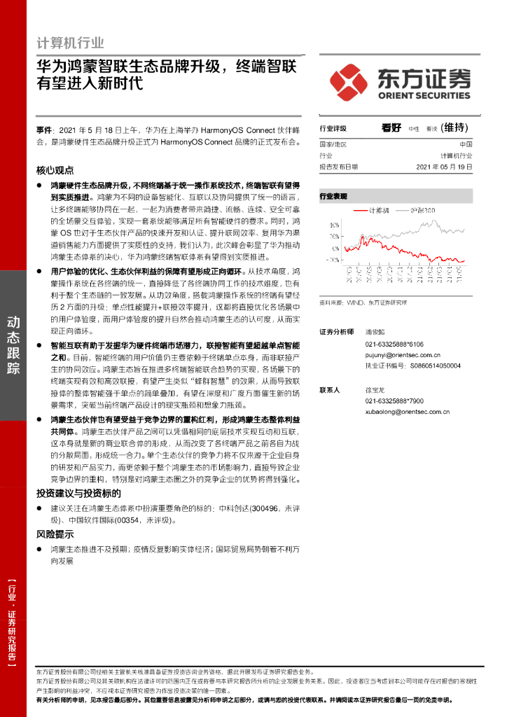 东方证券:计算机行业:华为鸿蒙智联生态品牌升级,终端智联有望进入新时代.pdf