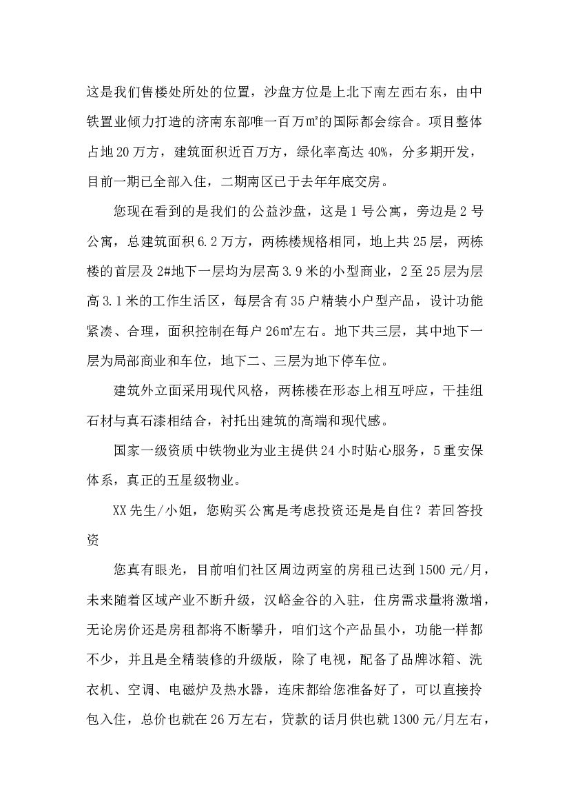 #说辞文案# 中铁逸都国际公寓销售说辞.doc