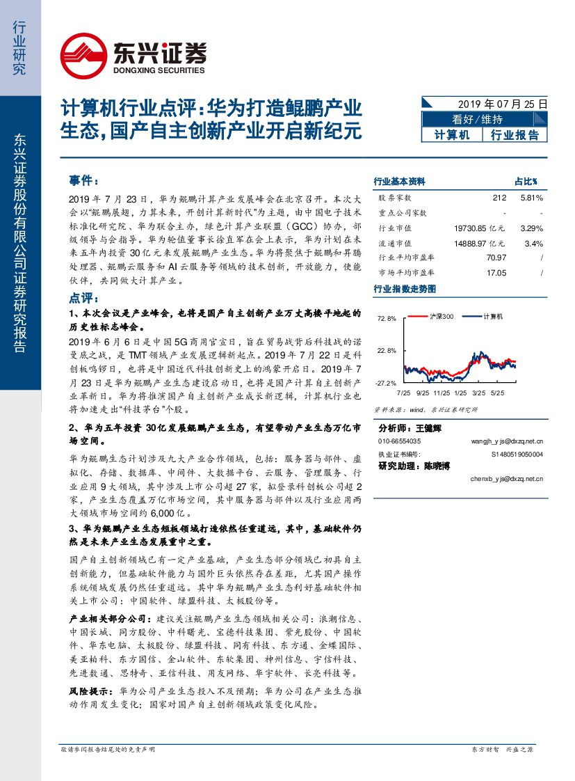 东兴证券:计算机行业点评:华为打造鲲鹏产业生态,国产自主创新产业开启新纪元.pdf