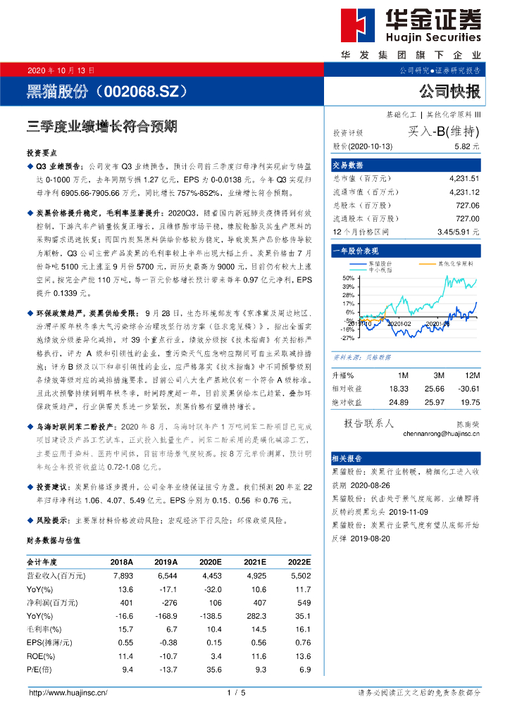 华金证券:黑猫股份(002068)-三季度业绩增长符合预期.pdf