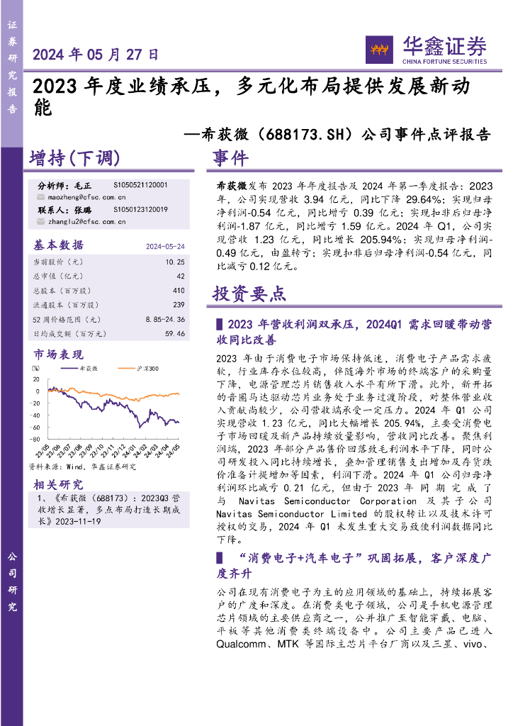 华鑫证券:希荻微(688173)-公司事件点评报告:2023年度业绩承压,多元化布局提供发展新动能.pdf