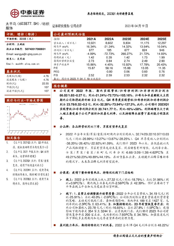 中泰证券:太平鸟(603877)-库存结构优化,2023Q1向好趋势显现.pdf