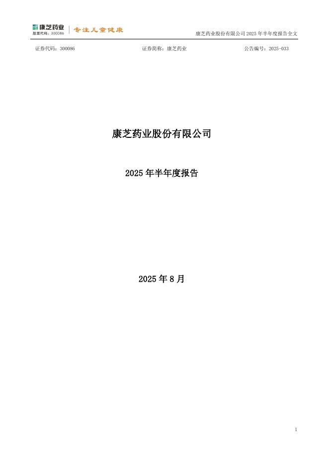 300086-康芝药业:2025年半年度报告.pdf