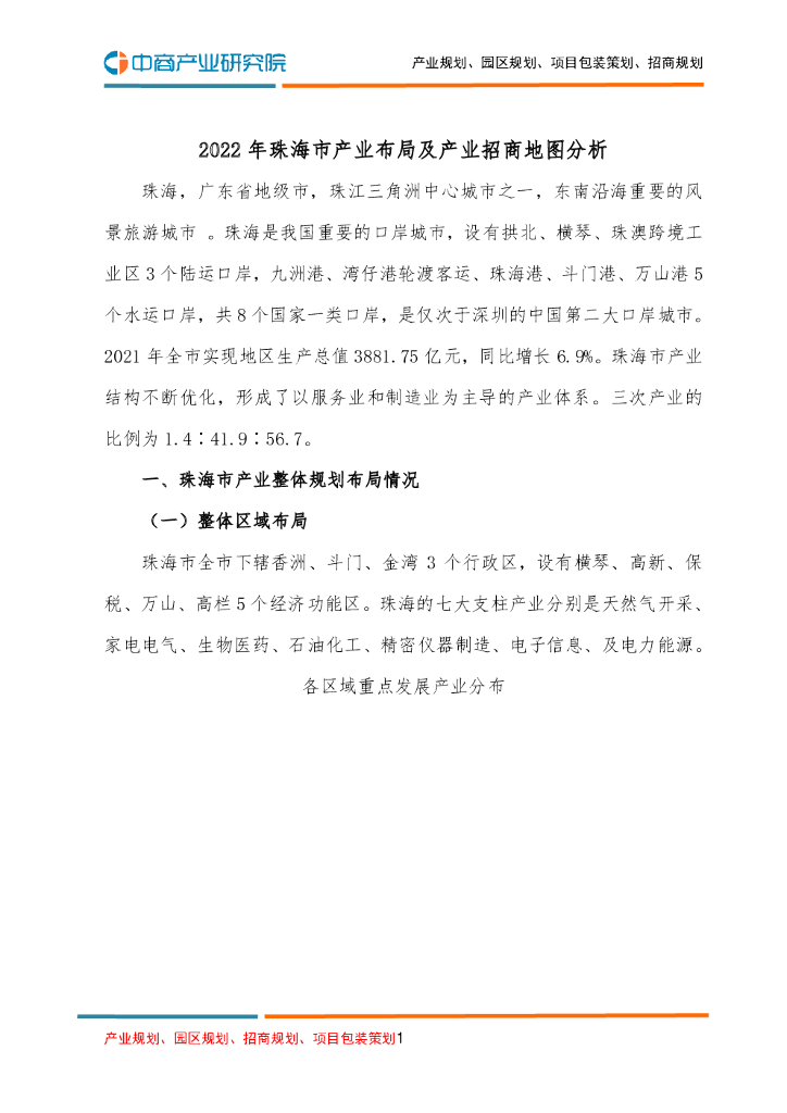 2022年珠海市产业布局及产业招商地图分析.pdf