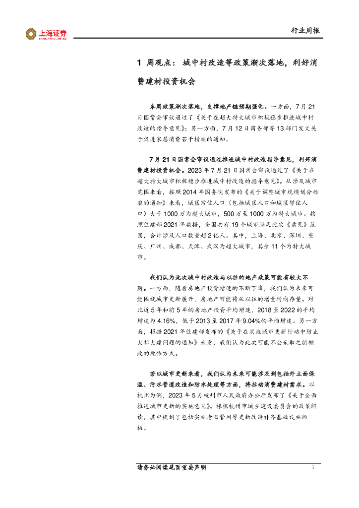 上海证券:建筑材料行业周报:城中村改造等政策渐次落地,利好消费建材投资机会.pdf