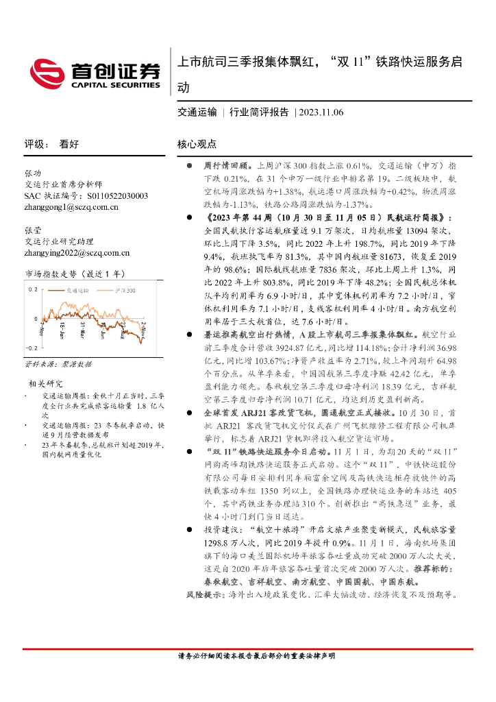 首创证券:交通运输:上市航司三季报集体飘红,“双11”铁路快运服务启动.pdf